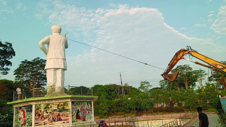 এর আগে গত শুক্রবার (১৬ মে) বিকেল থেকে ভাস্কর্যটি ভাঙতে শুরু করেন ফ্যাসিবাদ বিরোধী ছাত্র-জনতার সদস্যরা।