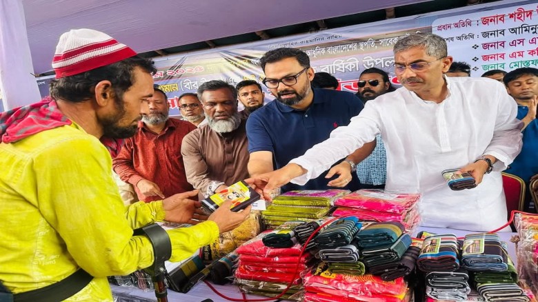 অনুষ্ঠান শেষে ৮ শতাধিক দরিদ্র নারী পুরুষের মাঝে শাড়ী লুঙ্গি বিতরন করেন।